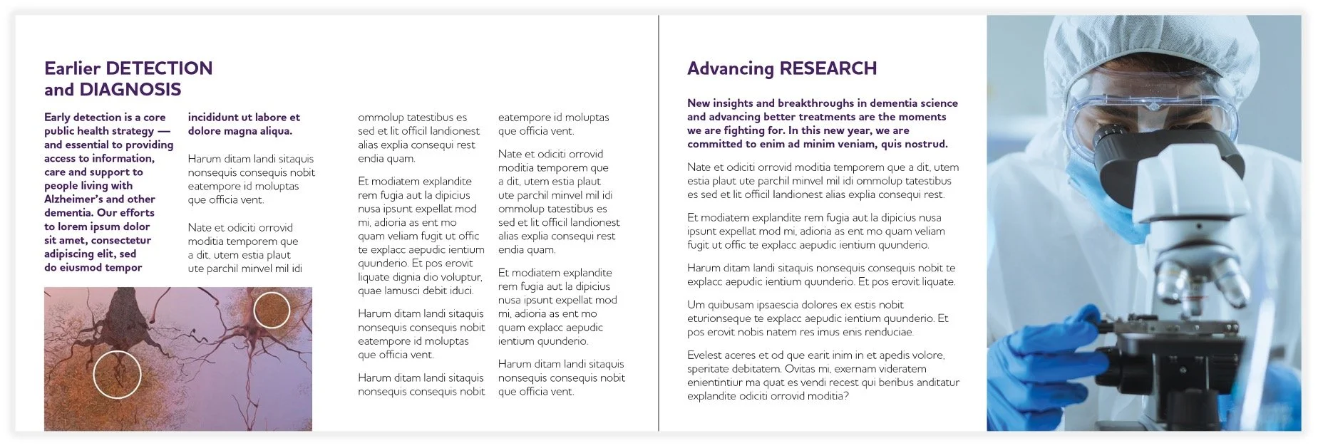 Our first concept centered around warm, tender, intimate storytelling. To bring this to life visually, we used stirring photography featuring moments with loved ones that show connection. The handwriting and heart give it a human touch — because for so many, Alzheimer’s is personal.