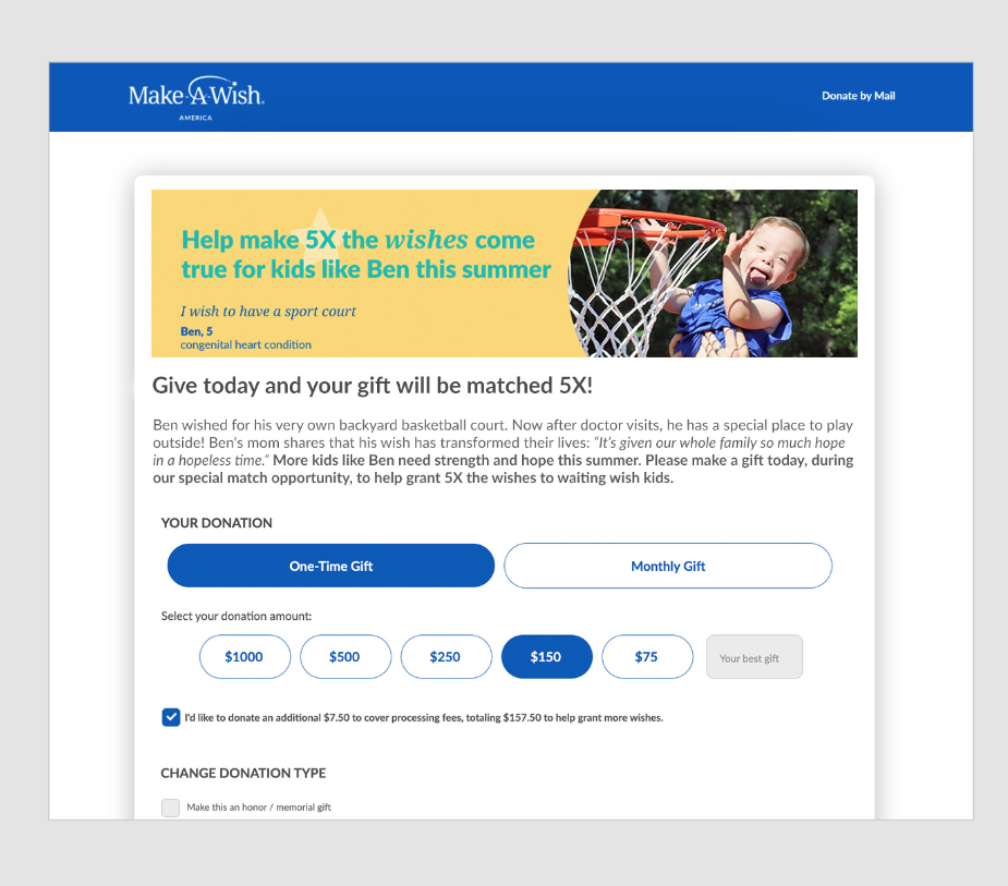 June, July, and August tend to be low-performing months in the non-profit industry. The challenge for this campaign was to combat the summer slump by designing a piece that stood out in mailboxes, engaged donors, and brought in gifts to help waiting wish kids when they needed them most.